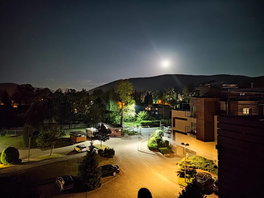Co do usytuowania balkonu – tak się akurat złożyło, że w trakcie mojego pobytu w Ustroniu miała startować rakieta Falcon, której pierwsza faza przelotu miała odbywać się nad wschodnim horyzontem, byłaby więc dobrze widoczna z tego mieszkania, ale chyba księżyc trochę zbyt mocno wtedy świecił i niewiele poza nim było widoczne na niebie. No trudno, może następnym razem.