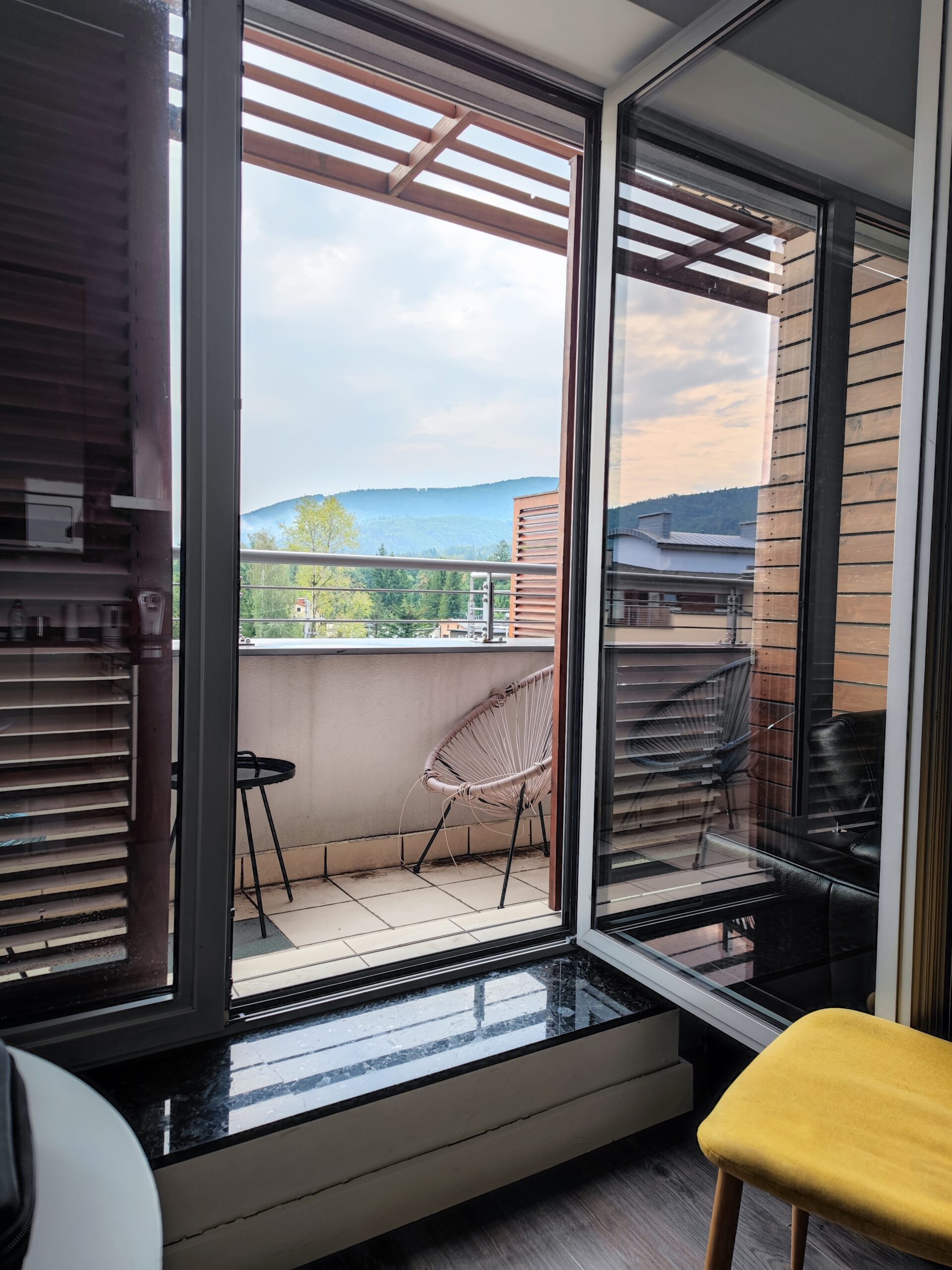 Do Ustronia w miarę regularnie jeżdżę już od jakiś 4-5 lat i zazwyczaj zatrzymuję się w jednym z apartamentów na osiedlu Zeta-Park przy ul. Staffa. Zwykle jest to moje ulubione mieszkanie na parterze, ze sporym tarasem, ale tym razem niestety nie było ono dostępne, więc padło na Apartament Górski, ulokowany na 3. piętrze. Roztacza się z niego całkiem przyjemny widok na Równicę. Mieszkanie składa się z pokoju dziennego z aneksem kuchennym w formie wyspy, do tego sensownych rozmiarów łazienka i dwie sypialnie – jedna z dodatkowym balkonem. Dwie sypalnie mają ten atut, że przy wypadzie rodzinnym (a czasem jeżdżę ze swoją mamą) każdy może się przespać nie przeszkadzając drugiej osobie. Całość za 1400 PLN za 3 noce, w tym miejsce parkingowe. Co prawda żeby wyjść na balkon, trzeba pokonać wysoki stopień, ale o ile mam się czego chwycić po drugiej stronie, nie jest to większym problemem.
